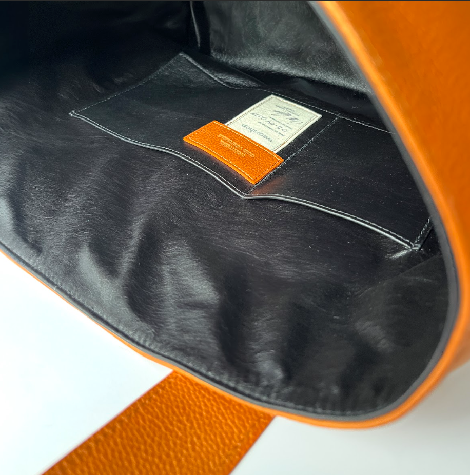 - Cuir grainé orange bronze métallisé, doublé de cuir véritable