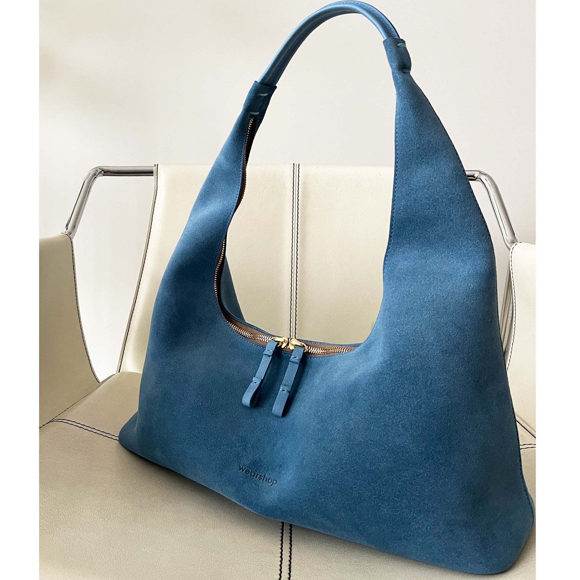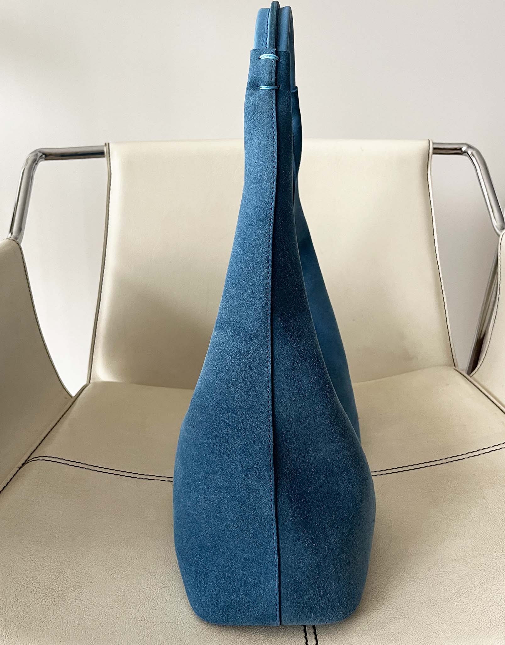 Riviera Hobo en suède bleu poudre