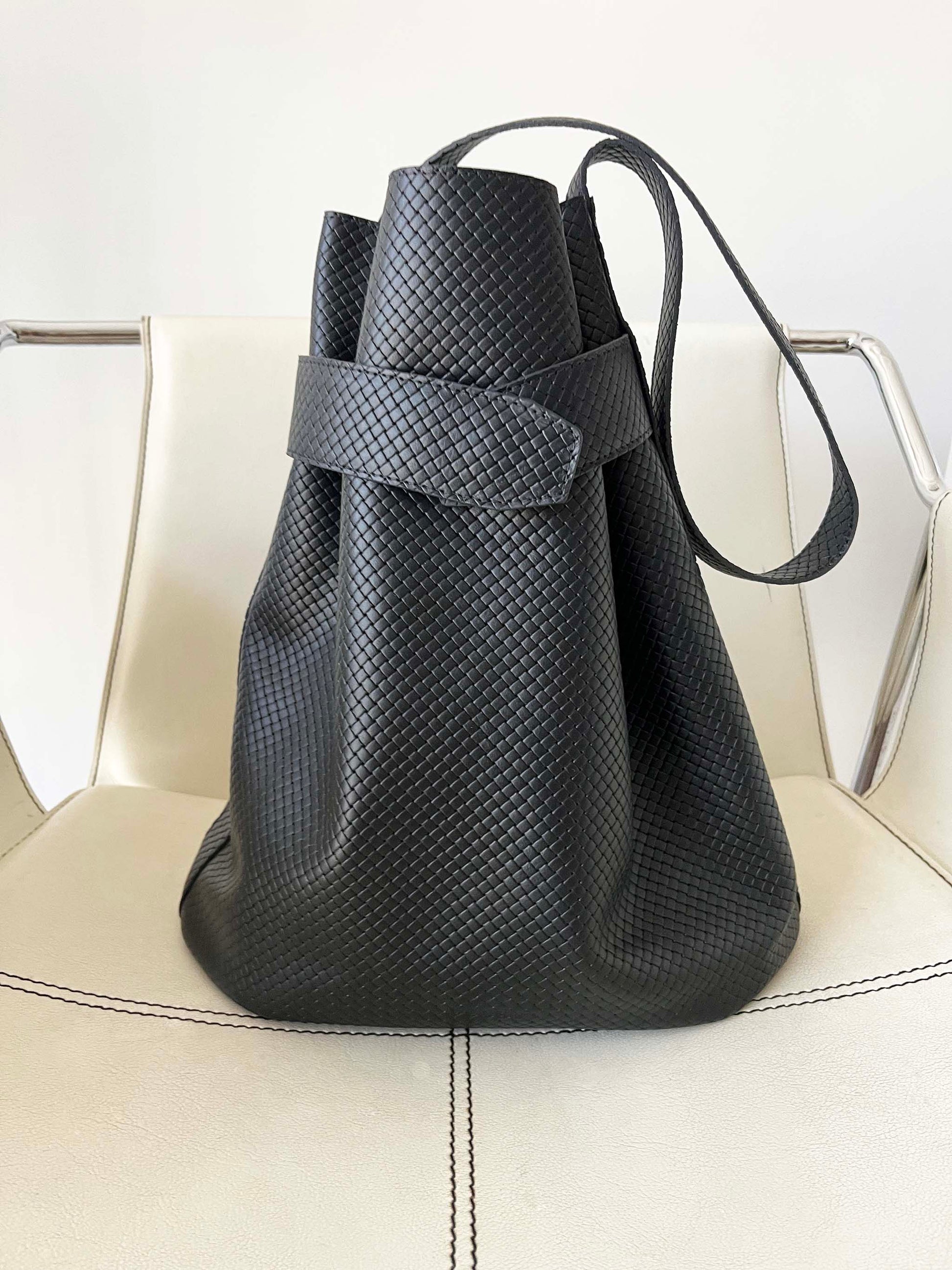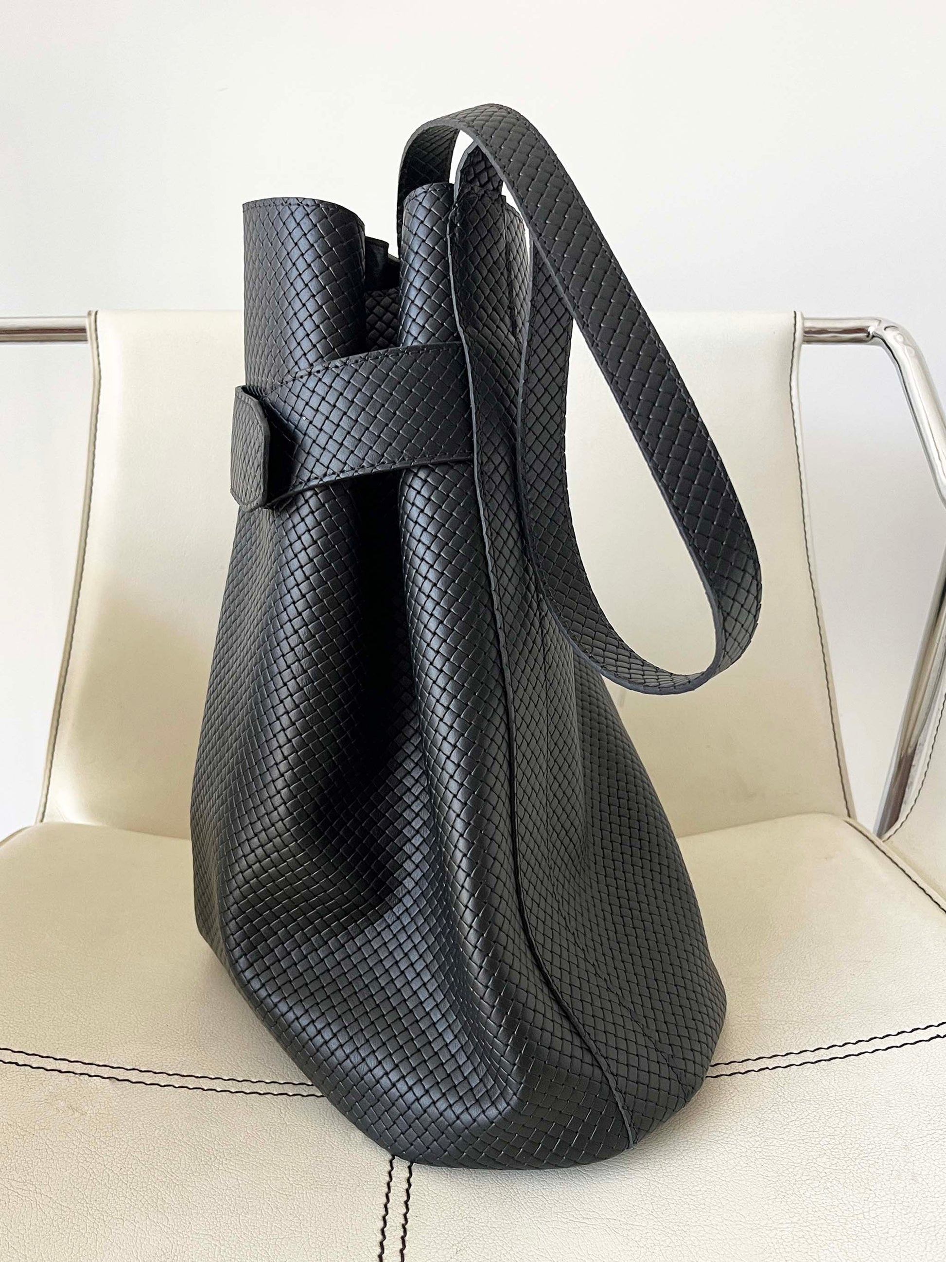 Le sac seau Navona en noir tressé