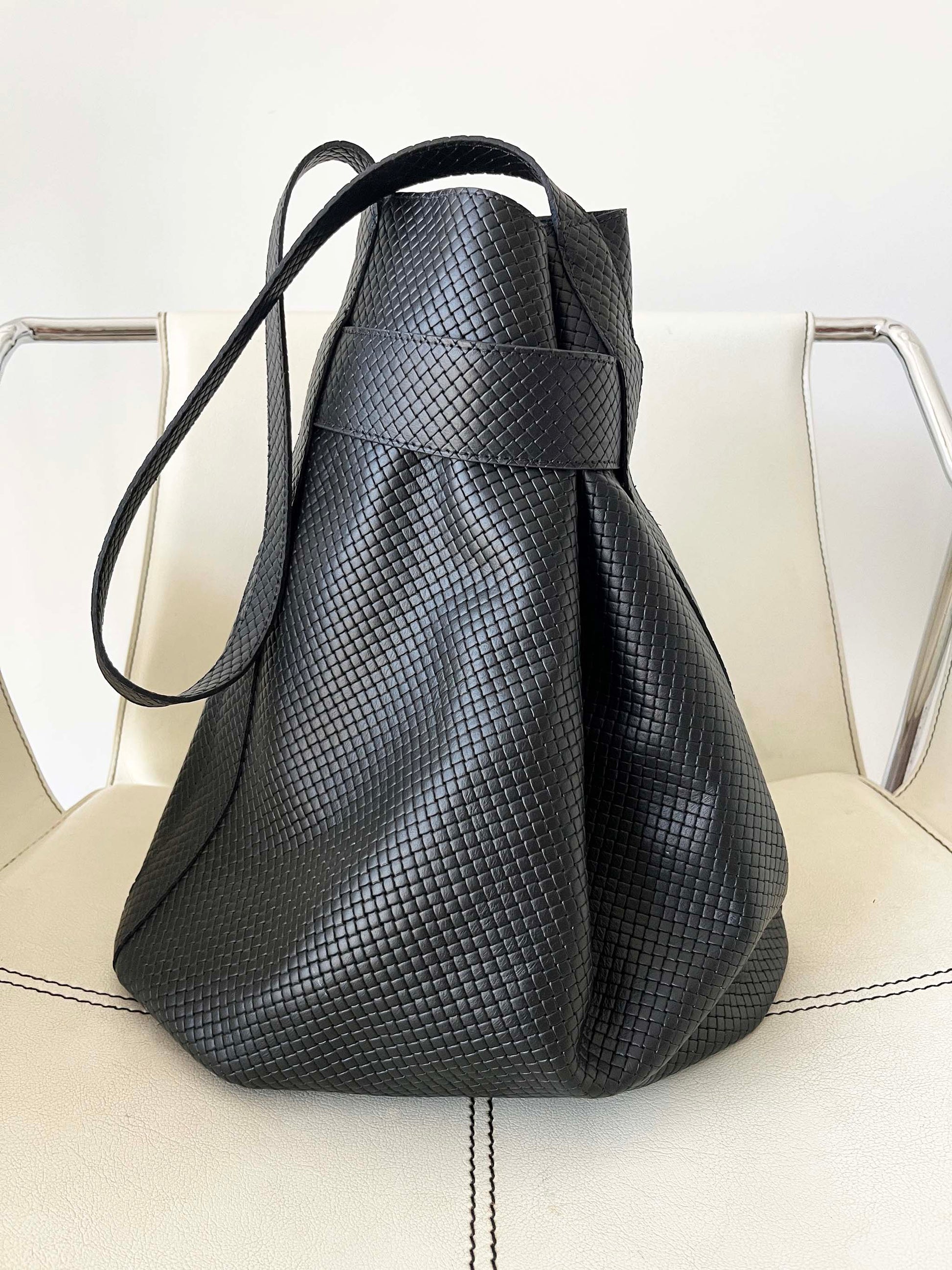 - Extérieur en cuir tressé gaufré, non doublé.